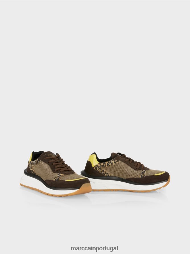Esses tênis de deslizamento contemporâneo vêm com um cordão elástico ajustável. Eles têm uma mistura material muito atraente de design e malha Leo. A sola externa esportiva é chana no salto em forma de quadrado. O piso sem deslizamento apresenta letras de Marc Cain e uma mancha de Leo na cabeça.