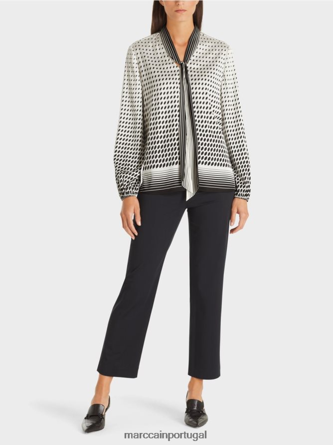 blusa de arco elegante com uma mistura de listras e pontos. O loop pode ser usado solto ou amarrado em um belo laço para um efeito particularmente feminino e divertido. O material que flui com conteúdo de elastano sublinha o conforto do desgaste.