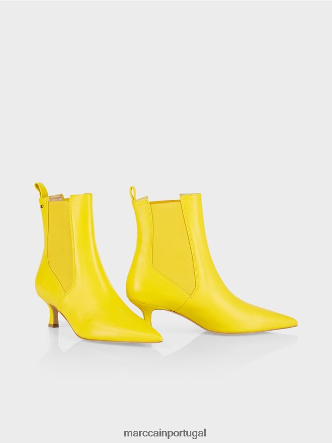 Botas altas no tornozelo com inserção elástica. Esta bota de tornozelo de couro tem uma forma feminina e cônica. Os altos saltos de gatinho com capa de couro enfatizam o personagem sofisticado. Para facilitar a saída e decolar, as botas vêm com uma inserção elástica e uma pulseira transparente. Um detalhe brilhante é o logotipo MC nos punhos.