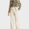 calças em um ajuste solto e casual com um motivo de palma. O estilo causa um grande impacto com seu design legal e gradiente de cores na bainha. Outros detalhes em cores são criados pela tubulação estreita na beira do bolso e na costura lateral. As calças fixam com um zip e botão.