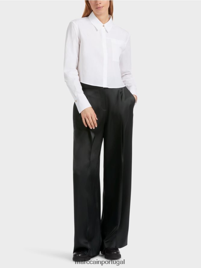 calças largas de wichita feitas de feita material elástico. Essas calças de perna larga são apresentadas em um estilo casual. Ao mesmo tempo, a cintura e os vincos, bem como os bolsos decorativos nas costas, dão um toque clássico. O zíper com gancho é discreto. Dois bolsos inclinados oferecem conveniência.