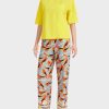 T-shirt feita de algodão com teor de elastano. Esta camiseta de cor simples vem com um amplo decote de tripulação decorado com bordado casual em zig-zag. Além disso, a camisa está ligeiramente montada e tem uma volta estendida. As mangas de um quarto de comprimento completam o design.