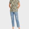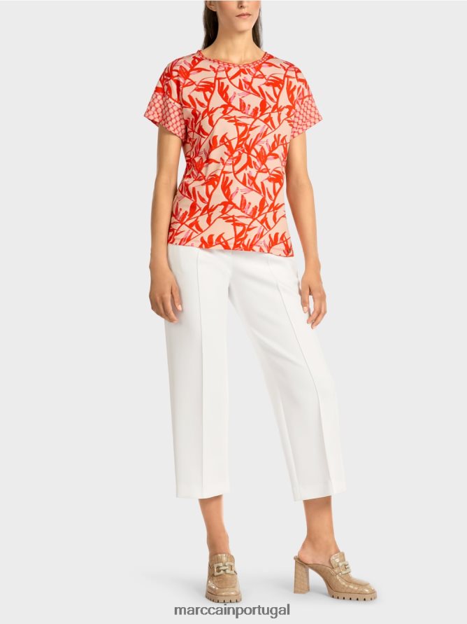 Esta camiseta está em algodão confortável. A mistura colorida de uma impressão floral combinada com um padrão de bolinhas torna essa camiseta única. Caso contrário, é clássico em design com um pescoço de tripulação e mangas curtas. A silhueta está relaxada, mas ligeiramente montada na cintura.