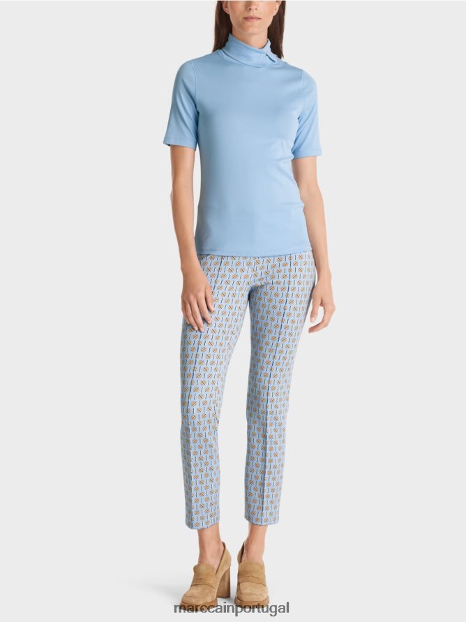 Feito de uma mistura confortável de tecido com algodão e elastane, esta camiseta também agrada graças ao seu Role o pescoço com um botão decorativo. Os detalhes típicos da camisa são as mangas de um quarto de comprimento. A parte superior é cortada perto da figura e apresenta letras Marc Cain na bainha.