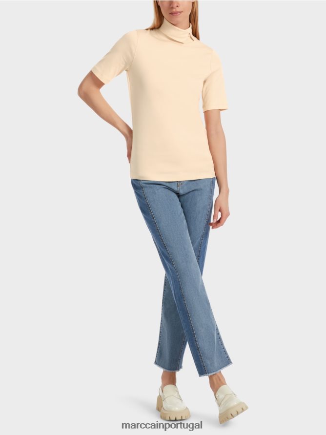 Marc Cain camiseta com rolo de rolo Creme escuro roupas 4P8PV01282 Marc Cain Portugal