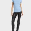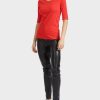 camiseta feita de camisa de algodão. O colar, que é fenda na frente, é um recurso de design eficaz. Isso permite que ele seja usado de pescoço alto ou dobrado. O contraste entre o colarinho de pescoço alto e as mangas enfaticamente curtas é muito legal.