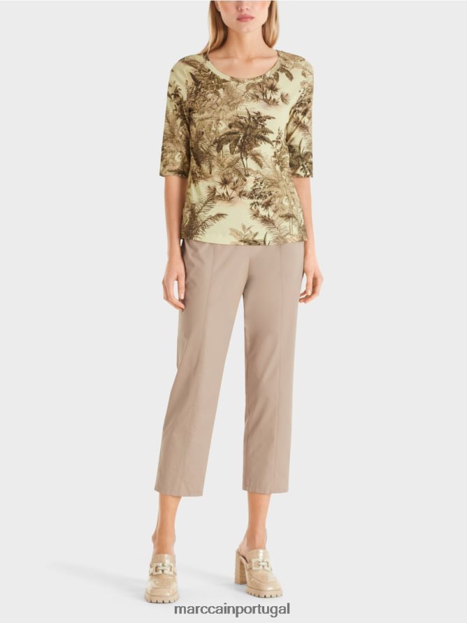 T-shirt impresso em um design com nervuras finas. O design limpo garante que a impressão floral para toda a parte realmente entre em sua própria. As letras de Marc Cain na frente central apresentam strass aplicado. A camiseta está em um ajuste de abraço e tem mangas de comprimento de três quartos.