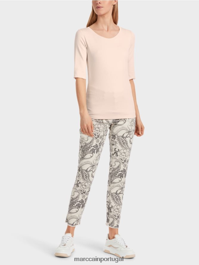 Marc Cain camiseta simples com mangas 3/4 Blossom de amêndoa roupas 4P8PV01234 Marc Cain Portugal