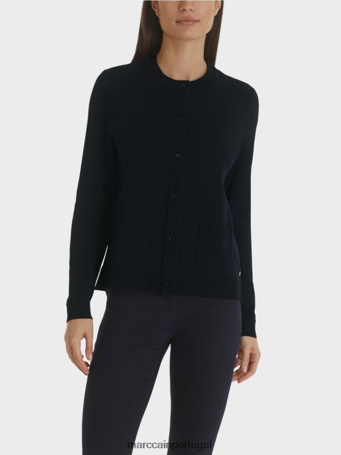 Cardigã de alta qualidade, com uma forma reta e bolsos de remendo. O cardigã “Rethink Together” é feito de 70% de viscose de Ecovero. A madeira da FSC Certified Forestry é usada para esta fibra e a produção é particularmente ecológica. A peça também é “tricotada na Alemanha”: o tricô dos fios em máquinas de tricô ultra-modernas e o acabamento dos tecidos são realizados na Alemanha. As peças individuais são costuradas juntas em empresas parceiras européias.