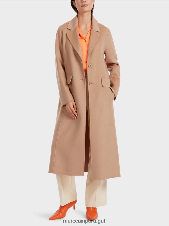 Este casaco é apresentado casualmente em lã elegante com lapelas clássicas. Sua silhueta longa é levemente alargada e fenda nas costas para obter conforto. Graças aos bolsos de grandes dimensões com sua aba decorativa, ele oferece muito espaço para itens ou também suas mãos. O casaco é preso com botões. As mangas cortadas redondo o design.