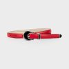 A cintura é feita de uma fibra têxtil robusta. Ambas as extremidades são aparadas com couro Nappa de couro. A parte têxtil do cinto é impressa com as letras de Marc Cain. O cinto da cintura é preso com uma fivela de tampa de metal.