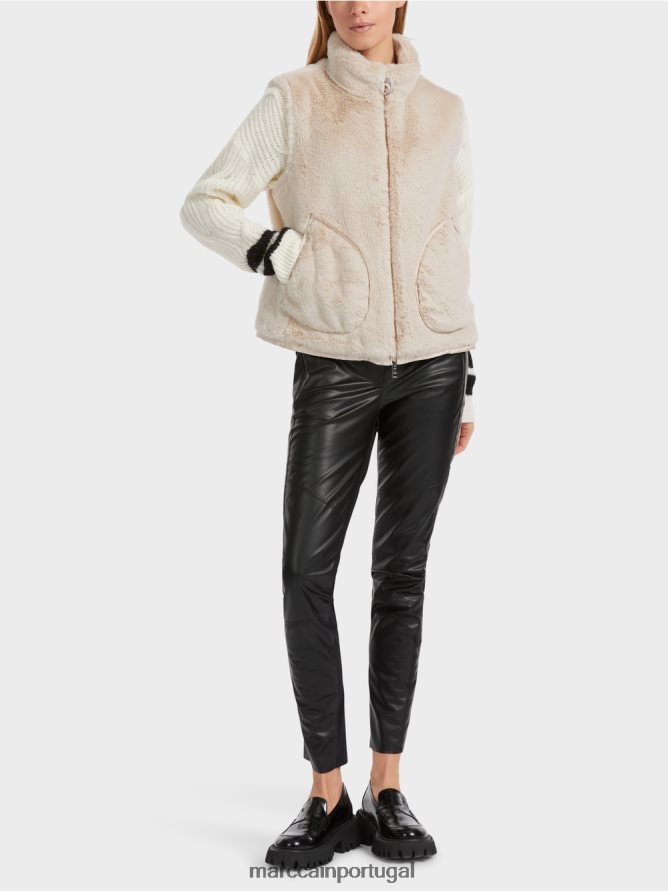 Uma peça para camadas frias: o colete é feito de pêlo leve e suave. Está totalmente forrado e pode ser facilmente puxado. A proteção contra o frio é fornecida pelo material isolante, bem como detalhes de corte e acabamento, como o colarinho de stand-up, a bainha de drawcord e os bolsos de remendo. Os bolsos estão equipados com zíperes.