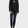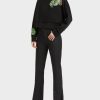 O moletom é feito de renda de tule. O motivo é inspirado em tatuagens místicas e mostra flores entrelaçadas e criaturas semelhantes a dragão. A bainha possui uma delicada borda de renda adornada com as letras de Marc Cain. As mangas são presas com um manguito nervoso.