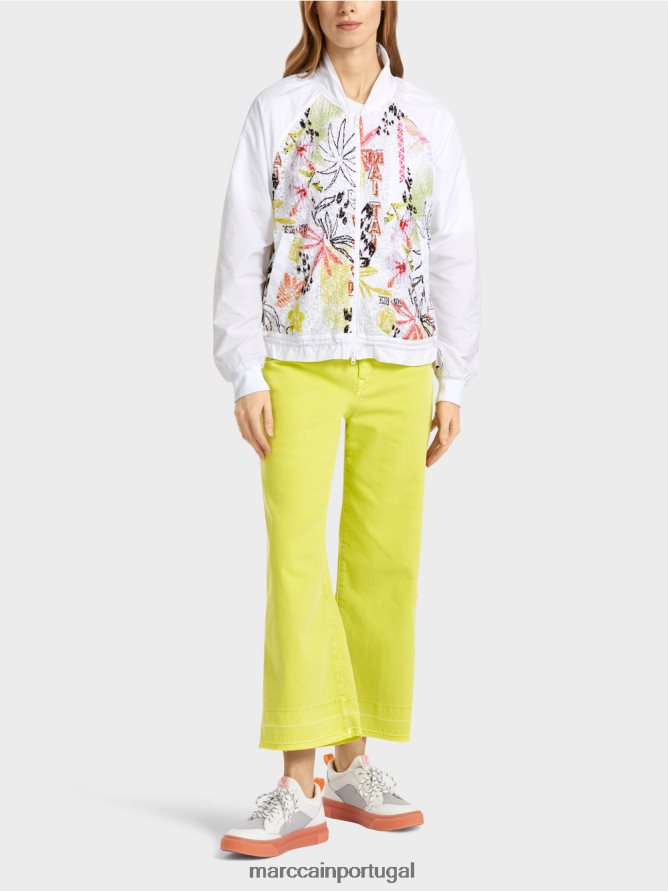 jaqueta relaxada em uma mistura de algodão. Esta jaqueta esportiva se destaca graças às inserções coloridas do tecido no corpo. Eles combinam com o design do verão com mangas raglan, dois bolsos laterais e uma cintura de cordão. A jaqueta se prende com um zíper. Um colar de stand-up completa esse design incomum.
