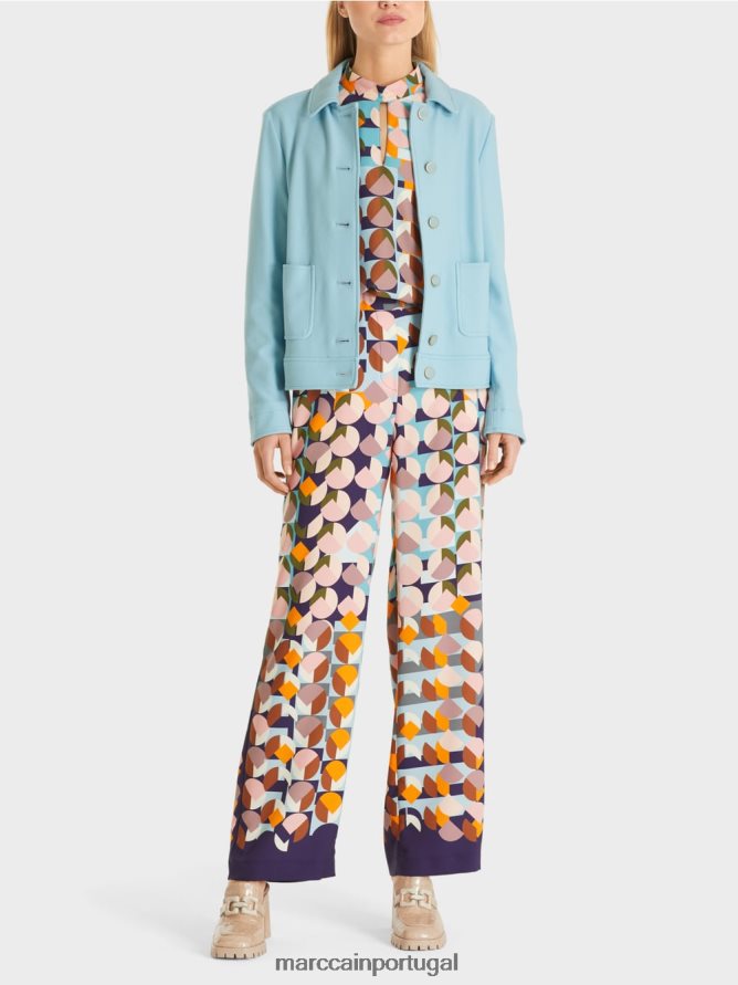 jaqueta lisa em um corte de figura. Esta jaqueta curta está em uma mistura de viscose com elastane e se sente confortável de usar graças ao tecido elástico. Possui costuras vienensas e apresenta uma banda de bainha e costura de zagueiro. Os botões correspondentes com as letras MC adicionam detalhes decorativos. Os bolsos e o colarinho completam o visual esportivo.