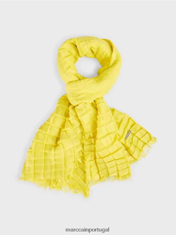 Este lenço está em uma mistura de viscose que lhe dá uma sensação leve e suave. As pregas deste design verificado adicionam um pouco de volume extra ao lenço e dão um toque de elegância. As bordas estão com franjas. As bordas estão com franjas.