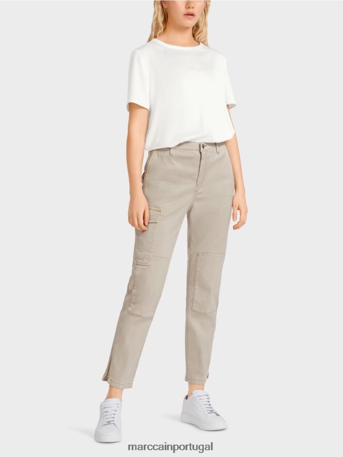 Essas calças de radom são feitas De uma mistura de Lyocell e leve o rótulo de sustentabilidade “repensar juntas”. O ajuste descontraído e o comprimento do tornozelo dão a eles uma aparência moderna. A bordas de bolso no tecido glitter fornece um contraste impressionante com o bolso e a guarnição do joelho.