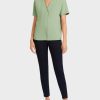 Top de estilo arejado de blusa: o tecido é feito de 60% de poliéster reciclado e leva o Rótulo de sustentabilidade “Rethink Together”. O material é semi -transparente e ligeiramente enrugado. Os flous nas mangas e na costura frontal criam uma aparência elegante.