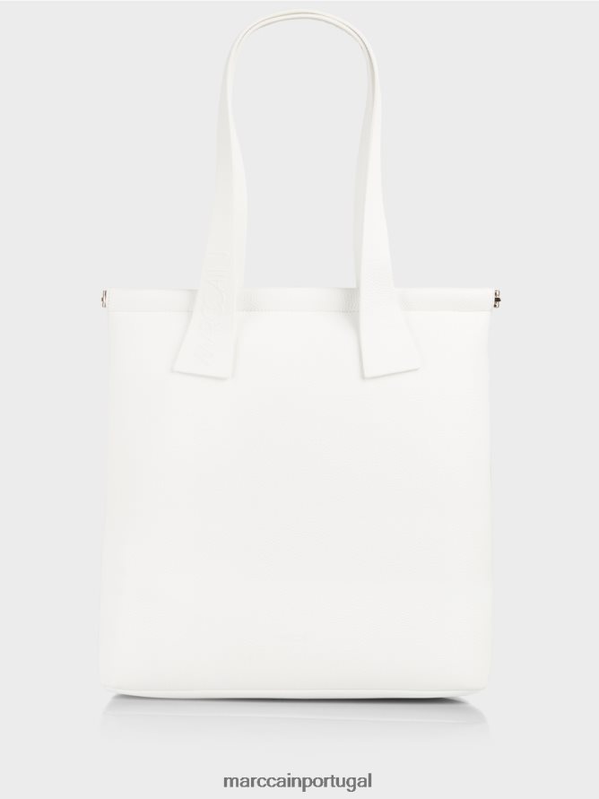 Saco elegante com material revestido. Graças à sua faux nappa de aparência exclusiva, esta sacola irradia elegância e talento. Sua abertura incomum de aba para guardar com segurança todos os seus itens também é um recurso interessante. Alças casuais com as letras discretas de Marc Cain redondo o design.