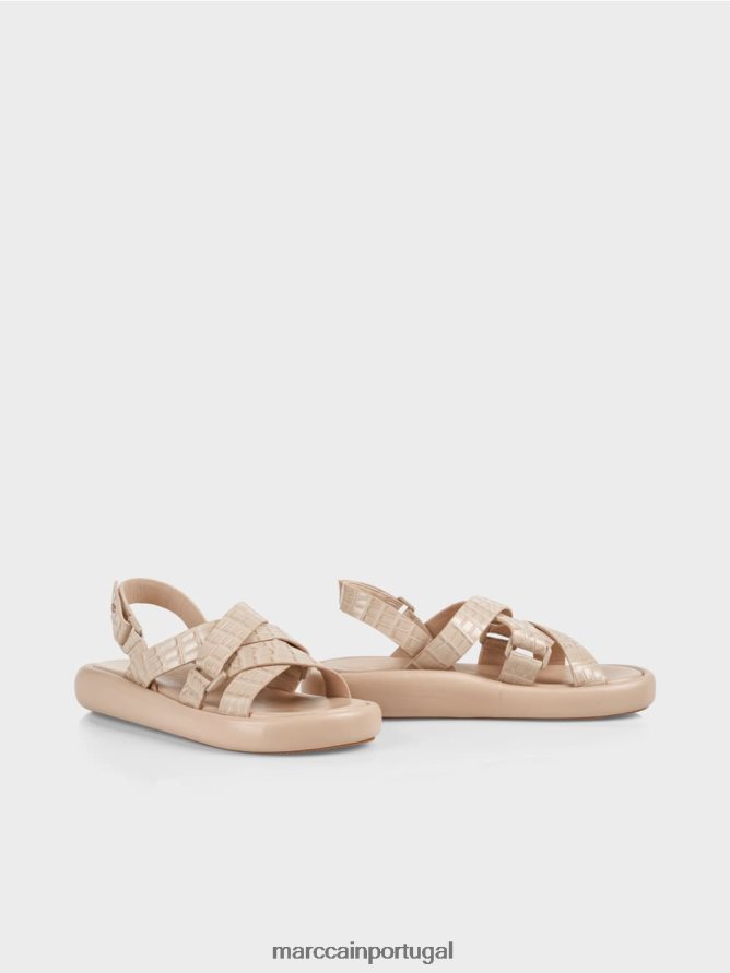 sandálias com tiras cruzadas estreitas. Essas sandálias de cinta apresentam um elegante efeito de crocodilo. O calcanhar arredondado acrescenta um elemento elegante. Um logotipo MC de cor dourada adiciona um toque final elegante a este design de ponta.