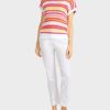 Sweater alegre em uma mistura material de algodão e linho. Um padrão de faixa esportiva é a marca registrada deste moletom casual. Ele largou os ombros e um pescoço de tripulação. Seu design de malha texturizado também é exclusivo e é finalizado com um acabamento com nervuras nas mangas e na bainha.