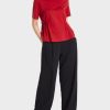 Esta camiseta é predominantemente feita de linho e a camisa tem uma textura irregular típica. O aspecto feminino vem da prega boba na cintura.