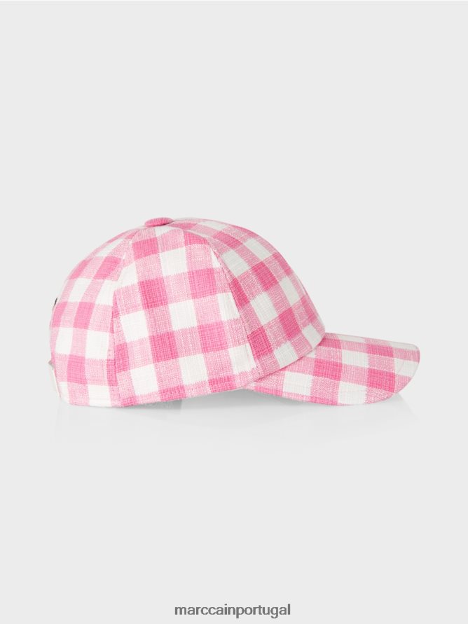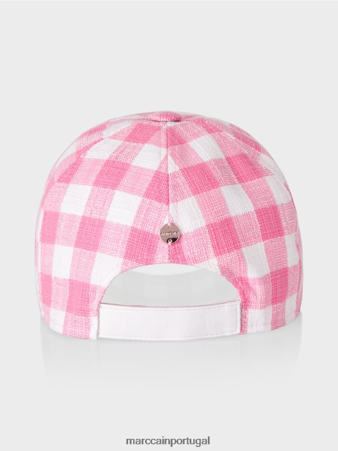 tampa elegante com verificações de Vichy, feita de uma mistura de algodão. A largura da tampa pode ser ajustada com a correia de velcro. com uma fita de grosta por dentro. Este modelo adiciona um toque feminino a todas as roupas.