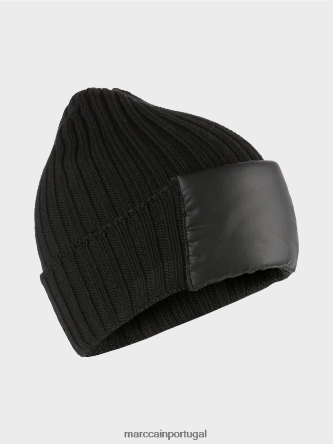 tampa de aquecimento feita de lã virgem. Um clássico esportivo para orelhas quentes é esse chapéu de lã em um padrão de malha com nervuras. É generosamente dobrado na borda, com um apliques fornecendo detalhes especiais aqui.