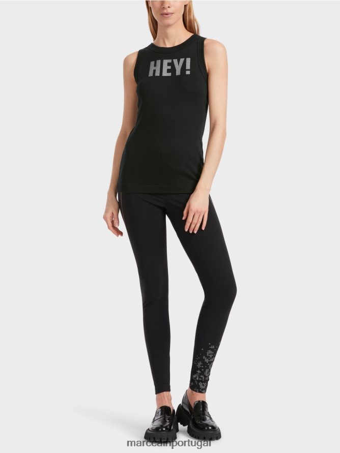 A parte superior sem mangas é feita de malha com nervuras. O momento de design está na orla distinta e no pescoço redondo de alto fechamento. Este último é enfatizado ainda mais pelo alto posicionamento do motivo da fonte. A impressão tem um efeito de brilho sutil.