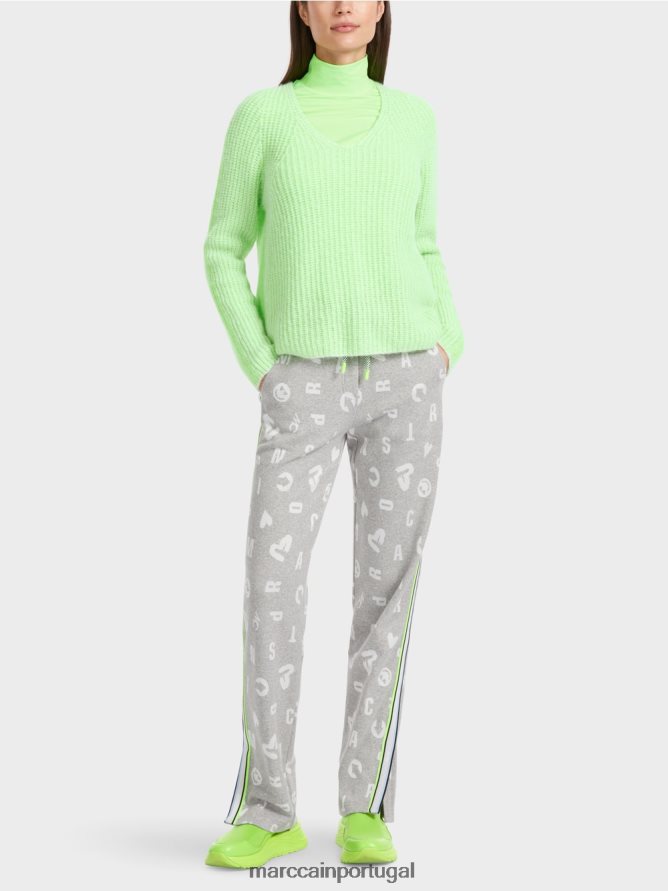 A silhueta do suéter de malha é estreita no ombro e na manga e larga no corpo. A malha é macia e leve. O padrão de tricô, no qual os pontos simples têm uma cor diferente dos invertidos, é muito eficaz. O item é tricotado completamente em uma peça usando um processo de tricô 3D. Não tem costuras e, assim, oferece conforto excepcional. Todo o processo de produção ocorre na Alemanha. Isso significa que o suéter é 100% fabricado na Alemanha.