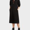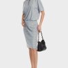 O vestido de malha tem ombros estreitos e é casualmente largo da manga para baixo. A liberdade de movimento adicional é fornecida pela fenda lateral. O toque esportivo vem através de inserções de malha nervosa na costura do ombro e lateral – e uma solução de colarinho combinando decote em V e colarinho pólo. O conteúdo de caxemira torna a malha super macia na pele.