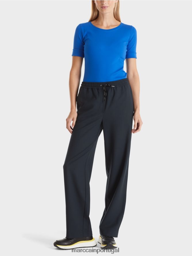 Marc Cain Welby Wide pernas de perna de perna de calça de cintura Midnight Blue roupas 4P8PV0524 Marc Cain Dresses