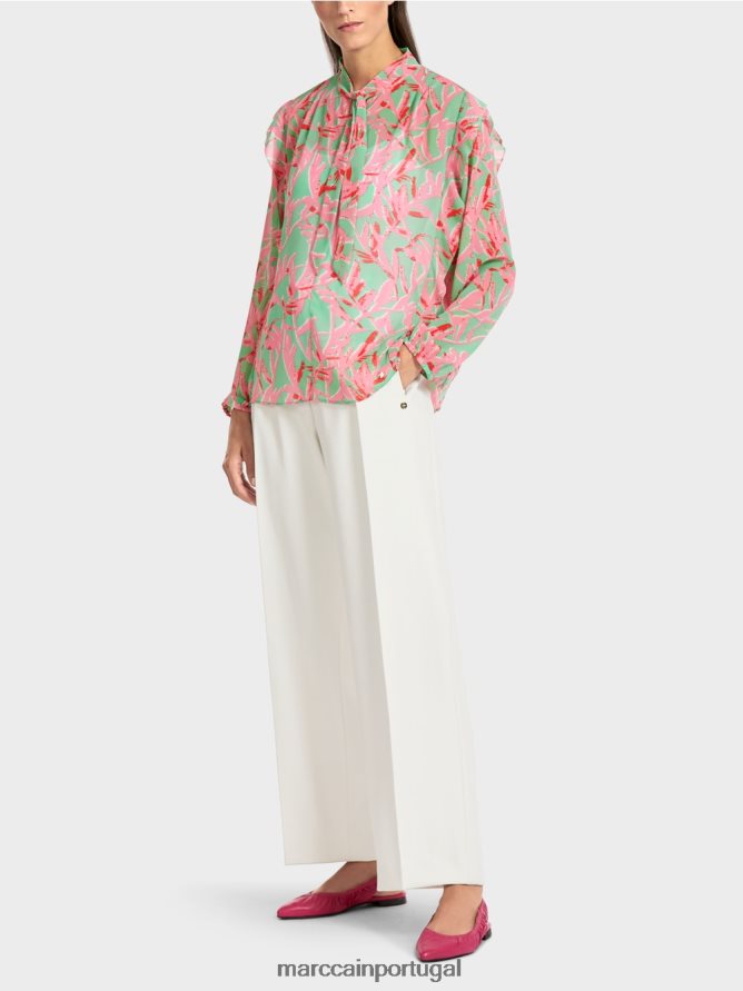 Marc Cain Blusa com babados com estampa floral Jade brilhante roupas 4P8PV0972 Marc Cain Tops