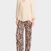 O design de impressão é uma reminiscência das técnicas tradicionais de tecelagem manual. A impressão digital e o posicionamento assimétrico dão uma reviravolta contemporânea. O tecido tem uma textura impressionante. A gola e as mangas desta blusa de quimono são sutilmente reunidas e o colarinho de stand-up é aparado com renda. A blusa é presa com um botão na nuca.