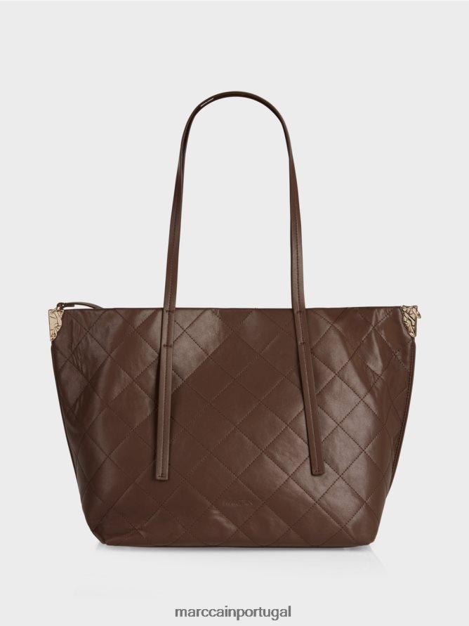 O comprador é feito principalmente de couro reciclado e leva o rótulo de sustentabilidade “Rethink Together”. Uma característica legal é a forma trapezoidal, que se estreita em direção à base. A bolsa fecha com um fixador magnético. A base é protegida por pés de metal. Os detalhes decorativos incluem acolchoado diagonal, alça de ombro extra longa e acabamento em metal. A alça do ombro pode ser presa ao último. A bolsa está revestida e possui um bolso interno com um zíper.