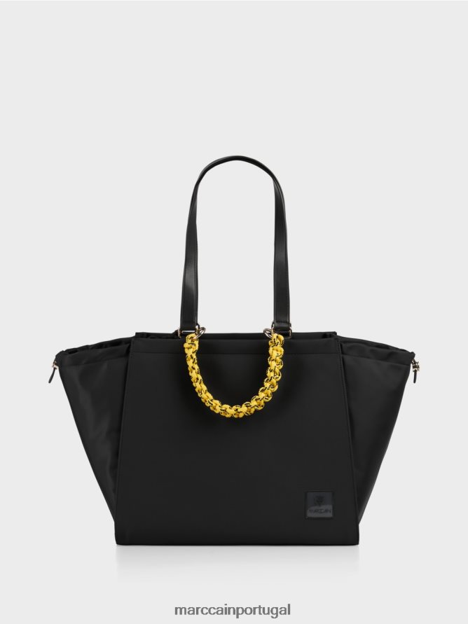 Graças à sua forma de balde, esta sacola do rótulo de sustentabilidade “Rethink Together” oferece bastante de quarto. A frente é discretamente embelezada com um logotipo MC. Um zip prende o interior que possui um pequeno bolso interior adicional. Detalhes práticos: a bolsa vem com uma alça de transporte de malha.