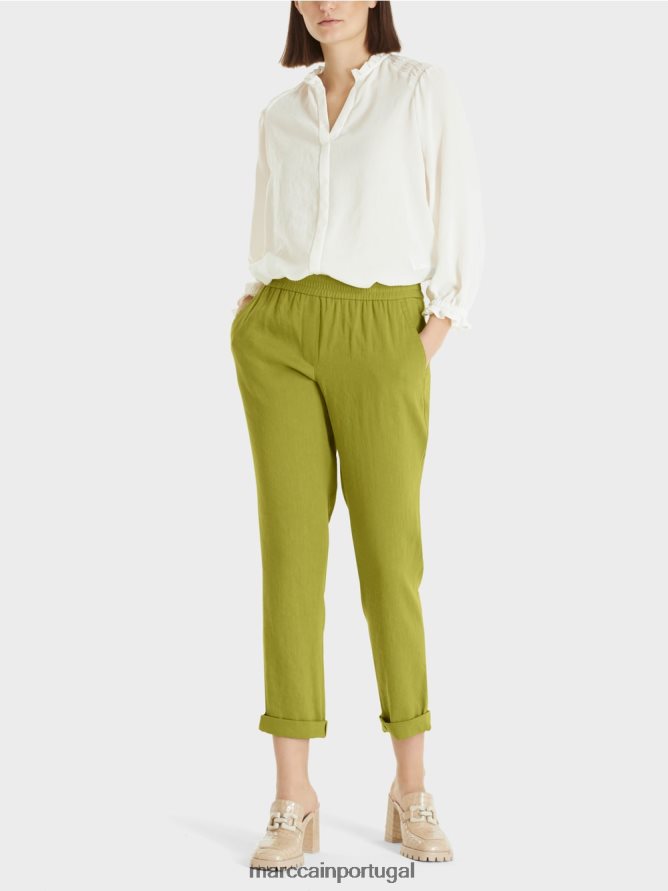 Essas calças de linho têm uma largura moderada da perna e criam uma silhueta fina. O cinto do corredor se encaixa confortavelmente na cintura e o linho de resfriamento e a mistura de viscose os tornam muito confortáveis de usar.
