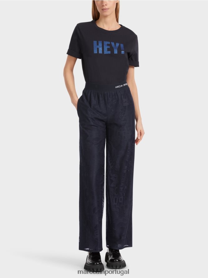 Marc Cain calça de perna larga de Welby em renda de tule Midnight Blue roupas 4P8PV0543 Marc Cain Tops