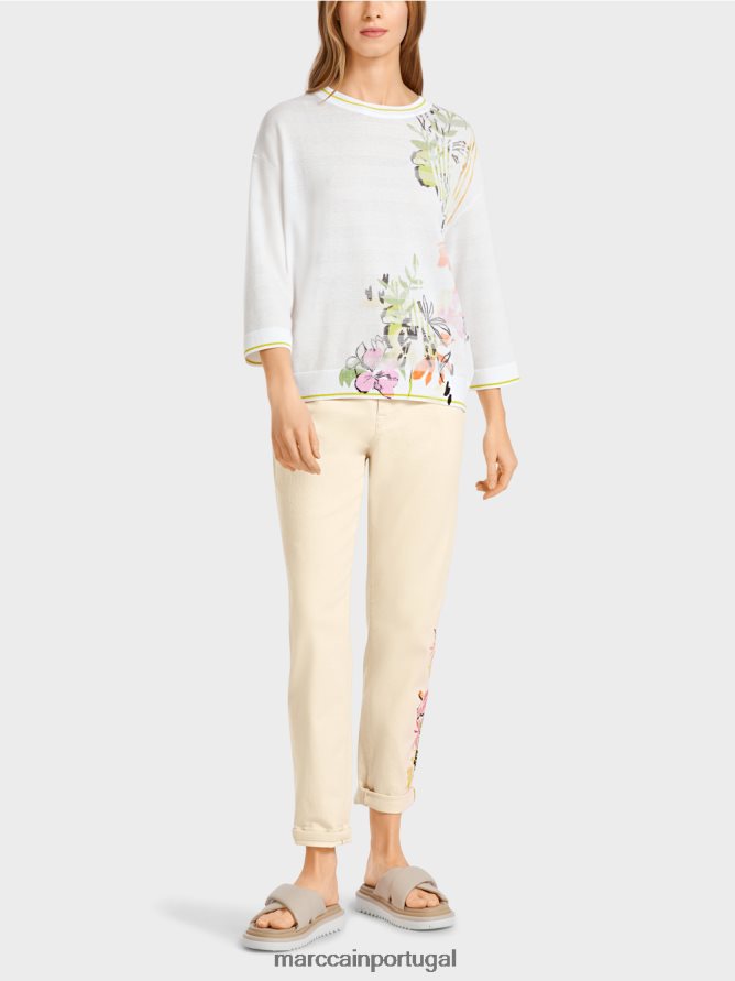 suéter de malha casual em uma mistura de material. Este suéter tem um padrão floral no lado esquerdo. Sua ampla silhueta apresenta ombros caídos e um pescoço de tripulação. O suéter está tricotado e finalizado em nossas instalações na Alemanha. O processamento adicional das peças individuais é realizado por nossas empresas parceiras na Europa. Isso torna o item “tricotado na Alemanha”.