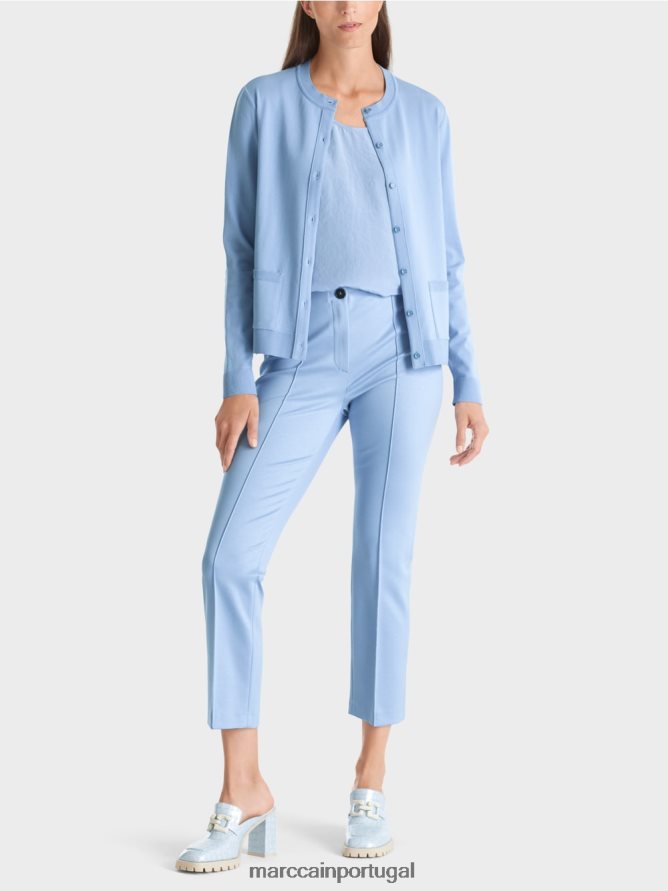 O fio à base de viscose é suave e robusto ao mesmo tempo. A viscose é um recurso renovável e o cardigã carrega o rótulo de sustentabilidade “Rethink Together”. Além disso, está tricotado e também finalizado na Alemanha. O processamento adicional das peças individuais é realizado por empresas parceiras européias. Isso significa que o cardigã é “tricotado na Alemanha”. O design é definido pela forma quadrada. Isso é ainda mais acentuado pela placket de botão distintiva e bainha com nervuras.