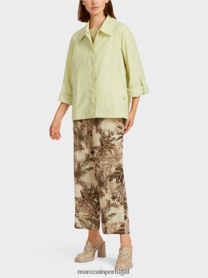 Esta jaqueta ao ar livre é feita de uma mistura de poliéster reciclado e algodão e leva o “repensar juntos” Rótulo de sustentabilidade. A silhueta da linha A e a bainha traseira ligeiramente arredondada são uma reminiscência da década de 1950. A largura da bainha pode ser ajustada com um cordão. A jaqueta possui uma placket escondida com presos para fixação. Outros detalhes incluem bolsos de solta e mangas de corte.