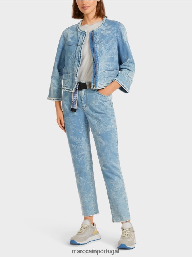 jaqueta elegante bolero em jeans com um design para todos. O design sutil é baseado em uma técnica de branqueamento. Está finalizado com acabamentos com franjas correspondentes. Os detalhes incluem uma placada de botão escondida e bolsos de Welt. O Bolero se prende com um zip.