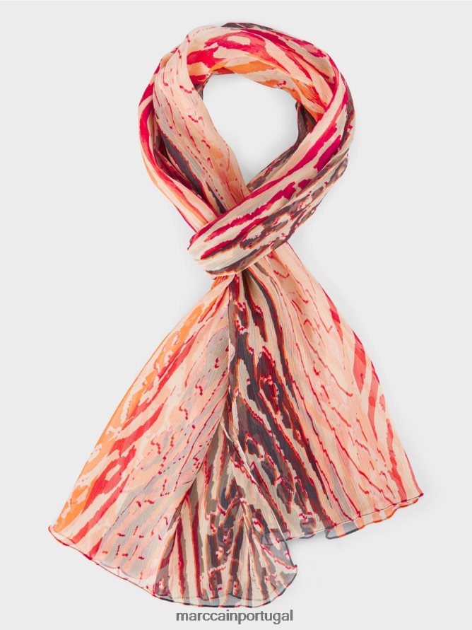 Este lenço é feito de seda e sente luz de fofoco contra a pele. A estampa de pele de animais estilizada vem em um efeito pixelizado e combina tons de vermelho para criar uma paleta de cores tropicais. As bordas do lenço são enroladas.