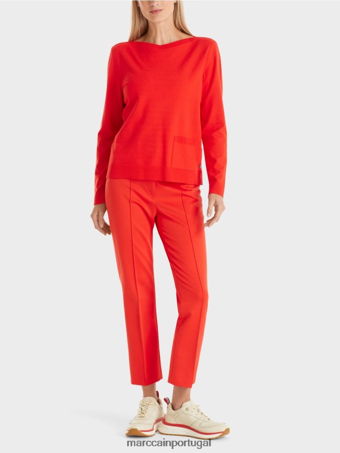 O suéter funciona com a geometria criada pelo decote do barco e o pequeno bolso do remendo no bainha. O toque feminino vem através do ombro estreito e da manga. O fio é baseado em viscose e de origem com responsabilidade. Como resultado, o item carrega o rótulo de sustentabilidade “repensar juntos”. Também é tricotado e embelezado na Alemanha. O processamento adicional é realizado por empresas parceiras européias. Isso significa que o suéter é “tricotado na Alemanha”.