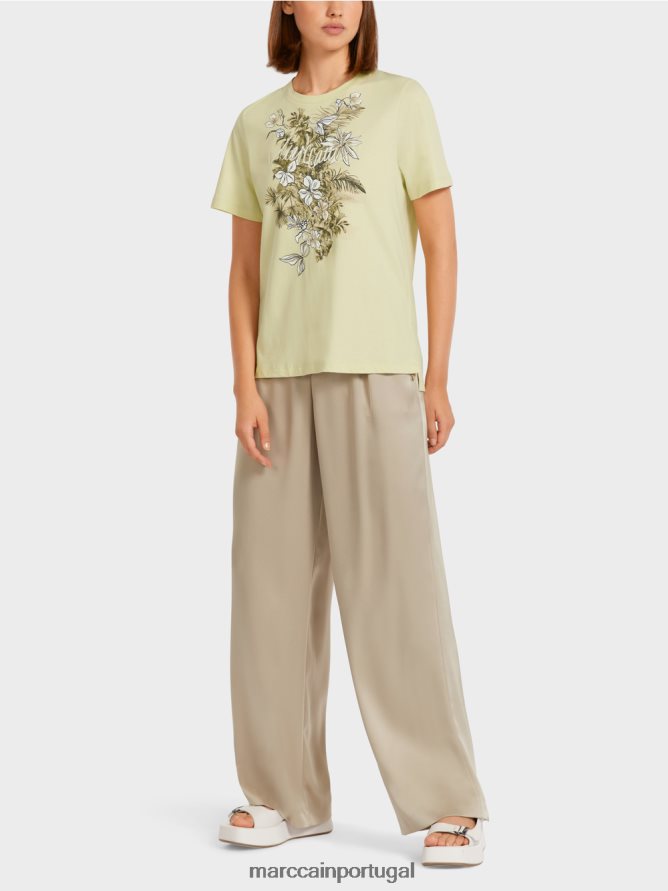 Esta camiseta é feita de algodão puro e leva o rótulo de sustentabilidade “repensar”. É classicamente cortado com fendas laterais e uma seção um pouco mais longa na parte traseira. Há um motivo floral com as letras de Marc Cain na frente. A camiseta é muito fácil de usar e será um ótimo parceiro de combinação.