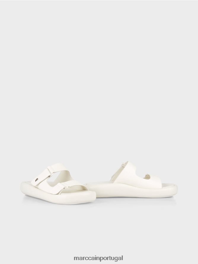 sandálias contemporâneas em couro 100%. Somente a forma arredondada da sola acrescenta um sotaque moderno a essas sandálias. Os únicos tons perfeitamente com as duas tiras de couro. Estes vêm com um ilhó de metal e um pequeno logotipo MC em metal. Detalhes práticos: a alça superior pode ser ajustada individualmente. Essas mulas também impressionam com suas propriedades que não são do deslizamento, graças à forma ranhurada na sola.