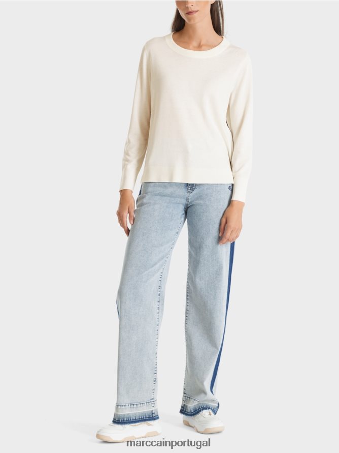 O suéter de malha leva o rótulo de sustentabilidade “Rethink Together”. A mistura de material elegante o torna leve e macio. O corte é amplamente clássico e definido por pescoço redondo e algemas de malha e bainha. Aspectos da moda aparecem na faixa contrastante nas costuras laterais – e nas fendas laterais.