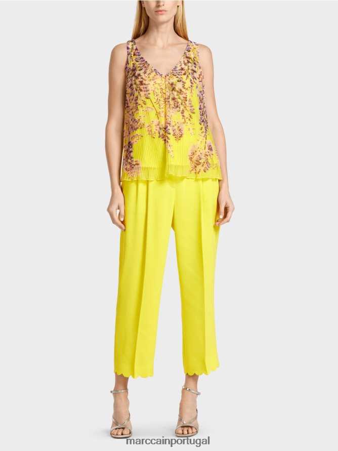 Marc Cain Top-line plissado verde de limão roupas 4P8PV01391 Marc Cain Dresses