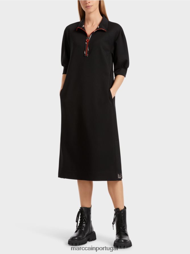 Vestido longo com elementos de estilo esportivo e feminino. Os olhos são o colarinho de stand-up e as mangas de raglan de meio comprimento, que parecem mangas de sopa devido ao manguito. O prendedor de zíper esportivo se torna um elemento decorativo, graças às cores contrastantes. Os detalhes funcionais incluem bolsos na costura lateral e a fenda alta na bainha.